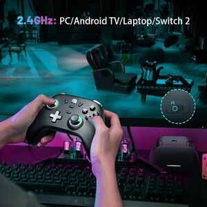 Immerse yourself in unparalleled gaming precision with this eECHPOWER wireless controller. Experience seamless connectivity across PC, Nintendo Switch, Android, and iOS devices, all powered by a reliable 2.4GHz wireless connection. The controller boasts customizable 7-color LED lighting, allowing you to personalize your setup and match your mood or game. Enjoy lag-free gameplay thanks to the 1000Hz wired report rate and a responsive turbo function for faster operation. The included charging dock ensures your controller is always ready for action, featuring a vibrant RGB LED indicator. Perfect for intense gaming sessions, competitive play, or simply enjoying your favorite titles on multiple platforms.