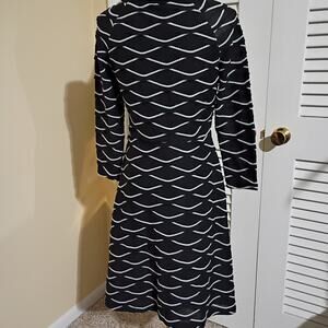 ECI 6 Skater Sweater Dress Textured Black and White Raglan Sleeve Light-Weight