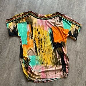 In EUC CONDITION. Pretty colorful top with beaded detail