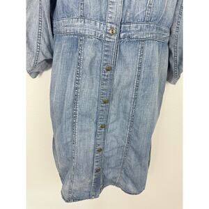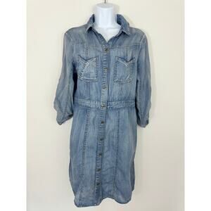 ECI Blue Denim Shirt Dress Size 6 Button Front Long Sleeve Belted