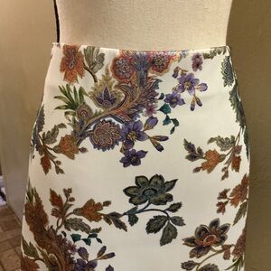 ECI Cream Pencil Skirt with Vibrant Floral Pattern