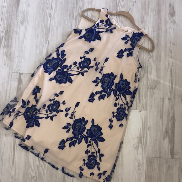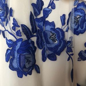 Worn once. Perfect condition. Beautiful blue embroidered floral print