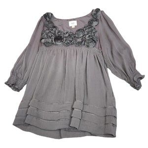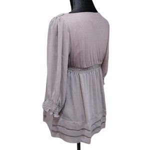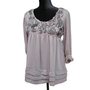 ECI Embroidery Purple Babydoll Flowy Blouse Top Size S