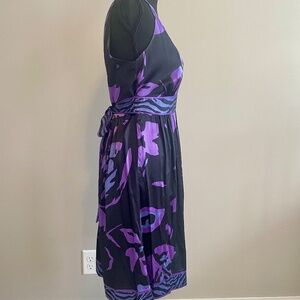 ECI | Floral Black Purple Silk Blend V-Neck Dress 8