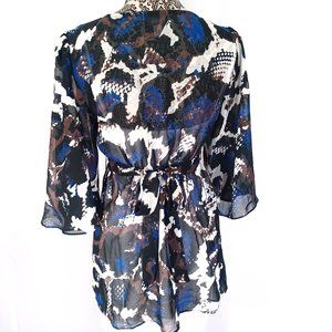 ECI Jeweled Waist Angel Sleeve V Neck Chiffon Tunic Blouse 6