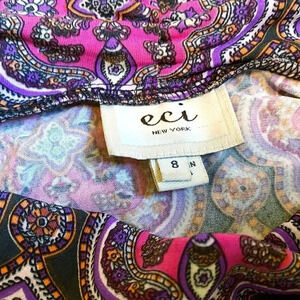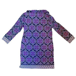 Soft, lightweight shift dress from ECI. COMFORTABLE, stretchy fabric; cowl neck; all-over bright pattern.