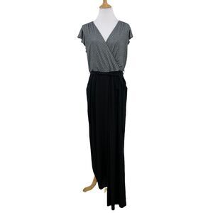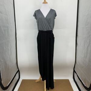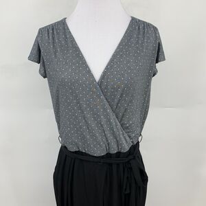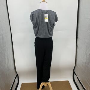 ECI METALLIC PANTS BODYSUIT WOMENS M MEDIUM BLACK SILVER FLUTTER SLEEVES POCKETS