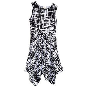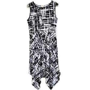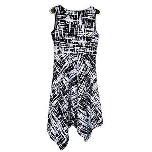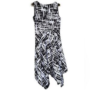 ECI NEW YORK black n white dress. Asymmetrical hem line. Very pretty on. Size L