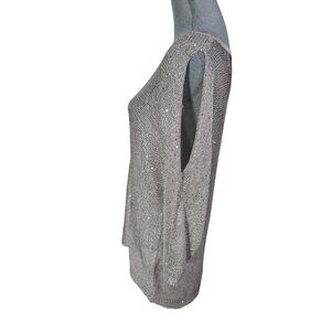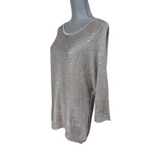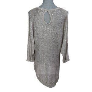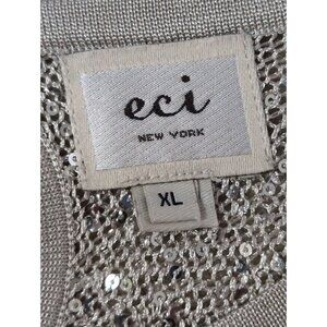 ECI NY Open Shoulder Pullover Sweater Womens XL Silver Sequin Keyhole Back Party