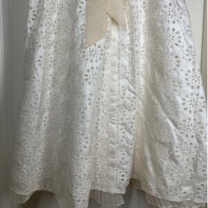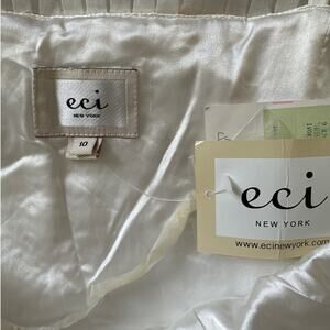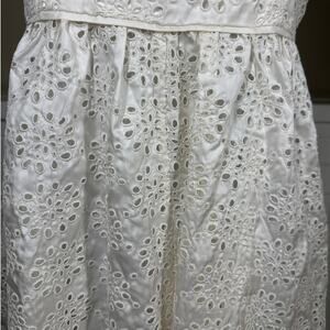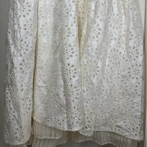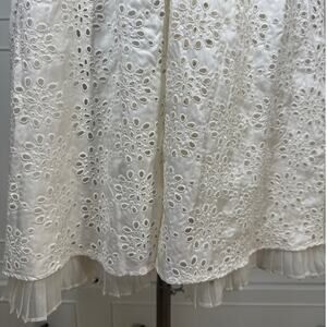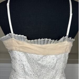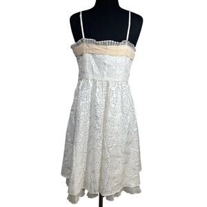 ECI New York 100% Silk Ivory Eyelet Ruffle Mini Spaghetti Strap Dress Size 10