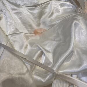 * This dress is new with tags but there is a stain on the INSIDE of the dress at the waist. See last pic. The flap part of the zipper is missing. Zipper does still work without it.
