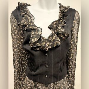 Chic ECI New York blouse with black floral design. Features elegant sheer details.