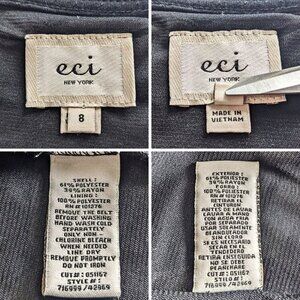 ECI New York Black Gray Bandage Spliced 3/4 Sleeve Sheath Midi Size 8