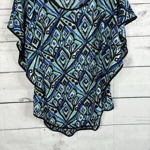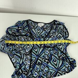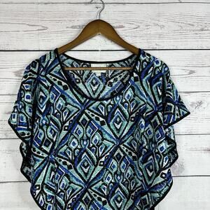 ECI New York Blouse Womens Large Blue Flutter Sleeve Costal Flowy Capsule