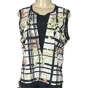 ITEM: ECI New York L Black Floral Window Pane Sheer Inlay Crew Neck Sleeveless Blouse