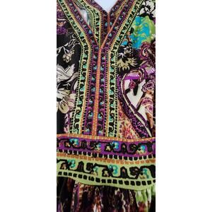 ECI New York Multi Color V-Neck 3/4 Sleeve Stretch Dress Women's XL Boho Purple