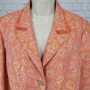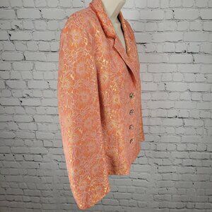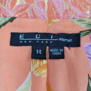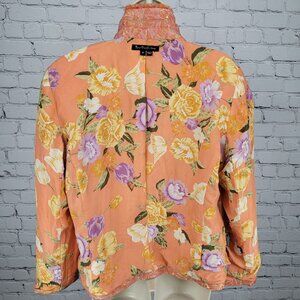 ECI New York Orange Floral 100% Silk Lined Rhinestone Snap Notch Jacket Size 14