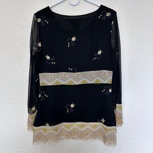 ECI New York Silk Y2K Empire Waist Long Sleeve Top Size M Fairy Feminine Sheer