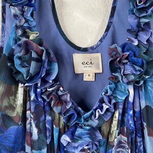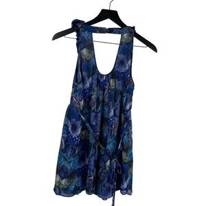 Great Pre-owned Condition ECI New York Top Babydoll Sleeveless Floral Blue Sz 6 Whimsigoth Fairy 90's Y2K