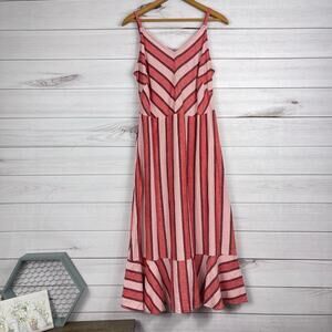 ECI New York Womens Midi Casual Color Block Stripe Linen Blend Dress Sz 6