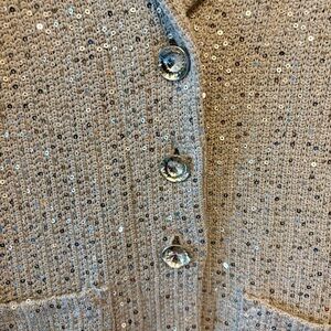 ECI New York Womens Silver Sequin Knit Jacket & Rhinestone Buttons Size Medium