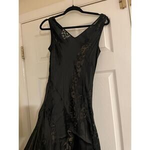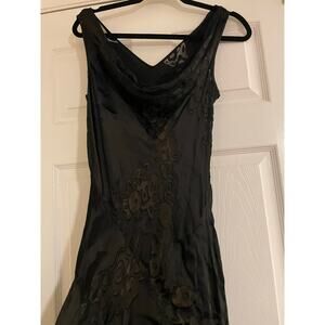 ECI New York blk silk blend sheer patterned whimsy goth maxi slip dress size 10