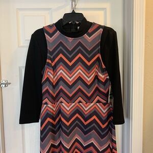 ECI New York Orange and Black Chevron Print Dress