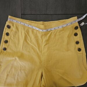ECI Sunflower Yellow Linen Blend Cropped Wide Leg Pull On Sailor Pants Size L