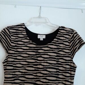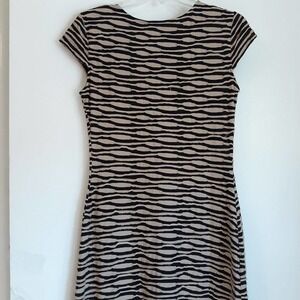 ECI Tan on Black Stripe Knit Short Sleeve Lined Maxi Dress Stretch Size Medium