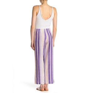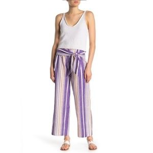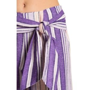 Tie Waist Striped Linen Blend Pants in a beautiful purple-pink stripe color combination. The lightweight, linen blend pants feature a self tie waistband and relaxed fit for comfort throughout the day.