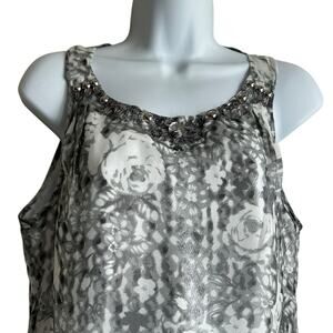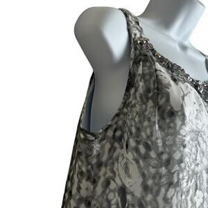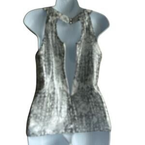 ECI Women Top 4 Metallic Silver Floral Rhinestone Neck Babydoll Disco Glam Boho
