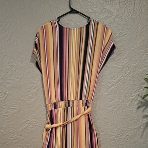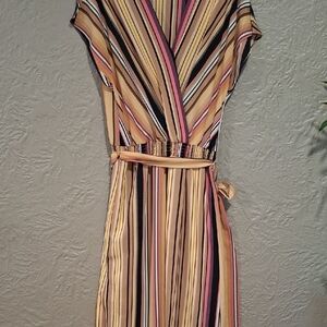 Embrace effortless style with this ECI sundress, featuring a vibrant yellow and red color palette. The off-the-shoulder neckline and sleeveless design make it perfect for casual resort wear. Its wrap style with a tie front adds a flattering touch to this flowing maxi dress.