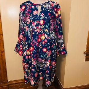 Floral dress Ruffle sleeve 97% Polyester, 3% Spandex Machine Wash