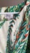 ECI ivory turquoise green feather cold shoulder tie waist blouse top Size M