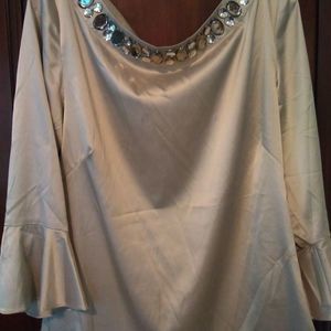 ECI NY Shirt Womens Silvery Gray Blouse Beaded Size Large
