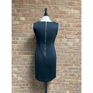 ECI New York Black & Tan Sleeveless W/Faux Leather Panel Front Sheath Dress