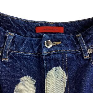ECKHAUS LATTA El Jeans Size 25 Blue Indigo Polka Dot Print High Waist Cotton