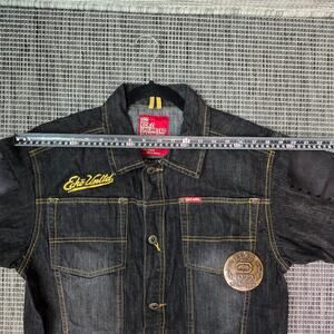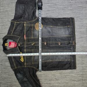 ECKO 1972 Unlimited Denim Jean Jacket Mens Large Black Leather Logo Embroidered