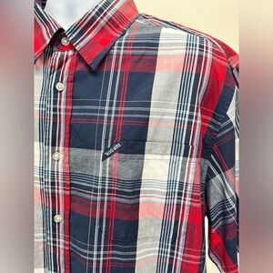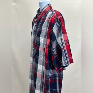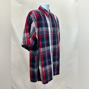 Men's Navy and red plaid short sleeve button down shirt from ECKO UNLTD, size XL.