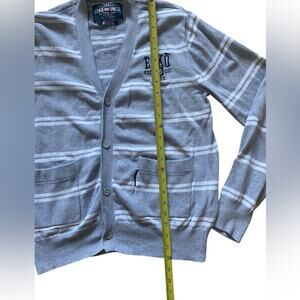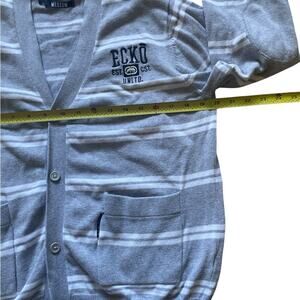 ECKO UNLTD Mens/Teen Gray and White Varsity Cardigan Size Medium Vintage Prep