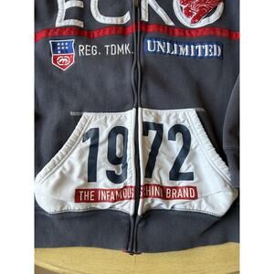 ECKO Unlimited Sweatshirt Zip Up LARGE RHINO Patch Rugby Skater Grunge VTG 1990s