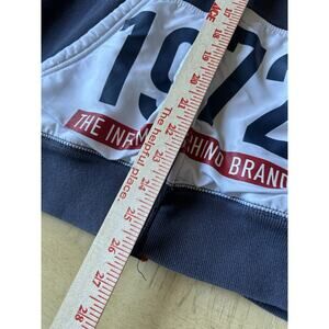 The VTG ECKO Unlimited Sweatshirt Hoodie with RHINO patches is a vintage piece that embodies the 90s rugby and Y2K skater grunge style. This full zip hoodie features embroidered accents, making it a unique and eye-catching addition to any man's wardrobe. The blue color and size L ensure a comfortable and stylish fit for those looking to add a touch of retro flair to their activewear collection.