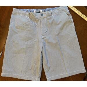 ECKO Unltd 38" shorts blue Pinstripe long length 100% cotton. Excellent Cond.