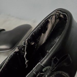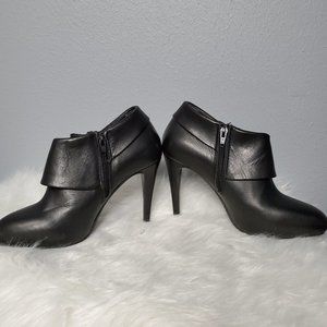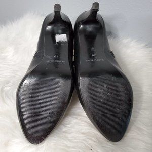 Rare find by this European designer! These are gorgeous black leather heels have a unique fold down with a delicate bow and side zippers. These gorgeous heels are perfect for going out!