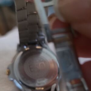 Elegant ESQ watch with a gold and silver two-tone design. Features a classic round face with Roman numerals.