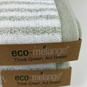 ECO Melange Bath Towel Set Green (Sage) White Striped Cotton Set of 2 NEW