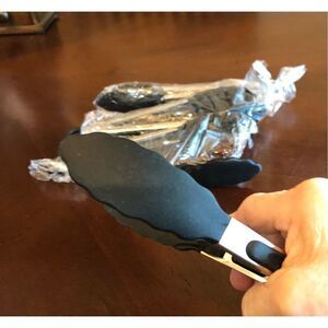 EcoQuality makes this set of four kitchen tongs. They’re made of premium stainless steel with silicone tips and a locking mechanism. About 8” long, they’re high heat resistant (up to 500°) and they’re nonstick and dishwasher safe. The handles are lined with silicone for a comfortable and safe thumb rest and grasp. These are great for cooking and grilling, but I find them most handy for serving. Perfect for a charcuterie tray and they’re NWT!