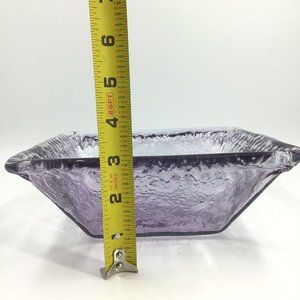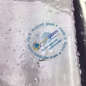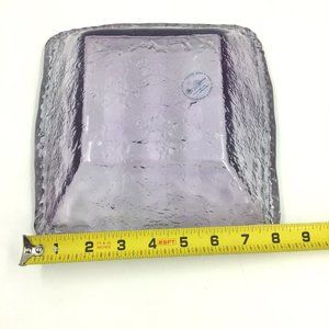 Beautiful made in Spain 100% recycled glass purple hue square bowl. Still has makers tag on bottom and never looks to have ever been used. Bowl is approximately 8" x 8" square, 3" deep, and base is approximately 4.5"x4.5" square. There are no chips or cracks. See photos for condition and measurements.