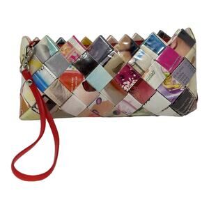 ECOIST Woven Wrappers Recycled Magazine Zippered Wristlet Clutch Purse