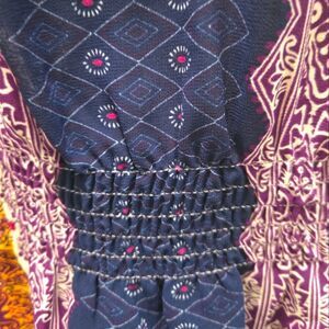 Excellent condition! Chest:26" from armpit to armpit. The waist has gathered elastic. Length:19" from the armpit down. 100% Polyester. Smoke-free, pet-free home!